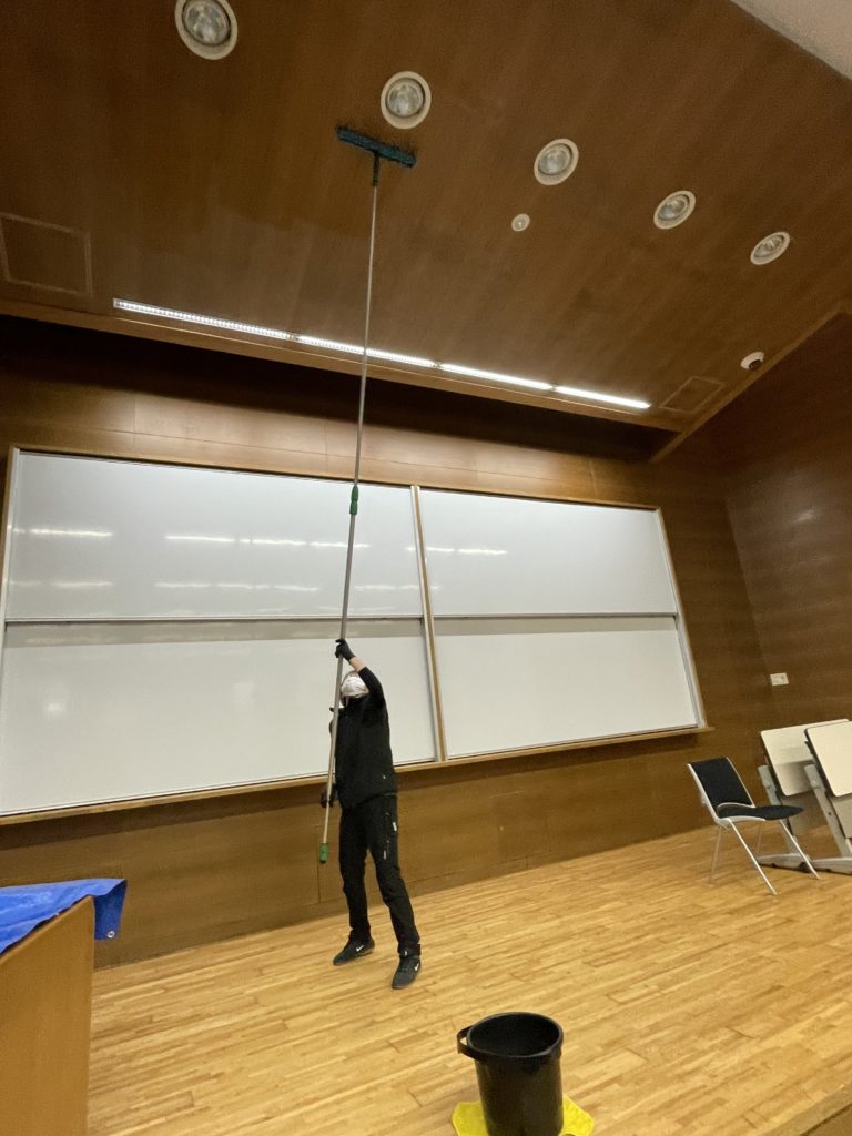後日、この場所で入学式があるそうです(^^) 若い人達のスタートの場にカビの匂いなんぞさせてたまるか!とオジさん・オバさん頑張りました😁 いい学園生活が送れるように祈ってるぜ👍