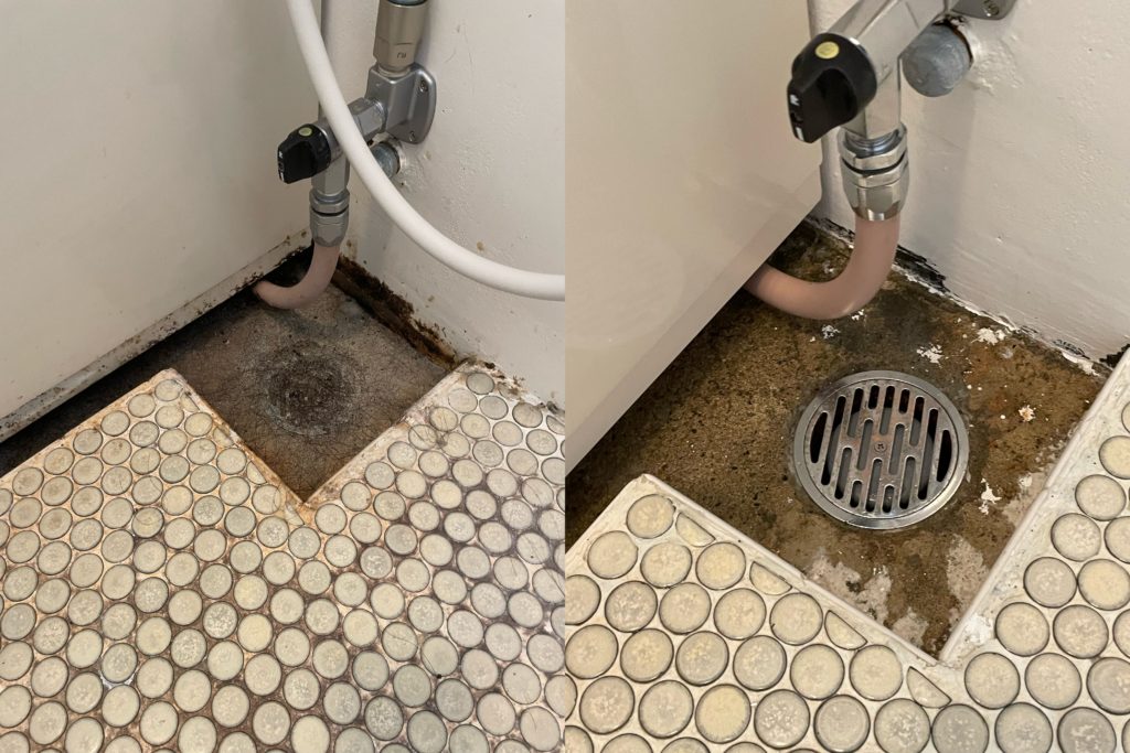 ちょっと古い作りのお風呂なんで、ビフォーアフターがわかりずらいですね😅 拡大して見てもらいたいけど…お食事中はご注意を!だいぶ髪の毛などの汚れが積もっていて苦労しました💦